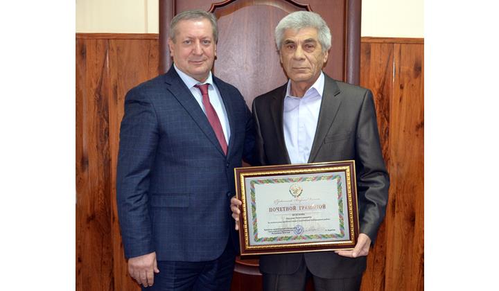 Дагъустан Республикадин Кьил Сергей Меликова 2022-йисан 2-декабрдиз кьабулай къарардалди намуслудаказ зегьмет чIугунай ва кIвалахда хьанвай агалкьунрай республикадин са жерге пешекарриз РД-дин государстводин шабагьар, гьуьрметлу тIварар гана.