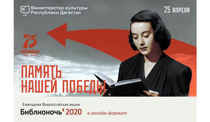 Санлай къачурла, и серенжемда уьлкведин библиотекайра зегьмет чIугвазвай 3 500-далай виниз къуллугъчийри иштиракда. Эфирда абуру военный корреспонденциядай, аскеррин хсуси чарарай цIарар, гьакIни Ватандин ЧIехи дяведин вахтунда фронтда ва далу пата рикI алай ктабрай кьатIар кIелда — ахпани эстафета тамашачийрив вахкуда. И кар кьилиз акъудун патал гьар са ватандашди (винидихъ къейднавайвал, кагъаздай ва я ктабрай) вичи кIелзавай цIарар лентиниз къачун ва рикIиз хуш тир социальный са сетда (@biblioteka05 ва @minkultrd аккаунтар къалурна, #75слов Победы, #библионочь2020 хэштегрик кваз) эцигун лазим я. Виридалайни хъсан кIвалахрин авторриз коронавирусдиз талукь тир сергьятламишунар алудайдалай кьулухъ театрдиз фин патал билетар гуда.