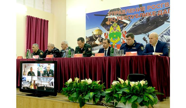 Совещанидал Росгвардиядин Дагъустанда авай Управленидин начальникдин заместитель — штабдин начальникдин везифаяр вахтуналди тамамарзавай Максим Жалыбина доклад авуна, 2024-йисуз кьилиз акъуднавай кIвалахдин нетижаяр кьуна. Ада къейд авурвал, алатзавай йисуз Управленидин къуллугъчийри 3 агъзурдалай виниз, гьа гьисабдай яз респуб­ликада кьиле тухвай чIехи мярекатра общественный къайдаяр хуьниз ва хатасузвал таъминаруниз талукь 2 агъзурдалай виниз серенжемар кьилиз акъудна, гьакIни, терроризмдихъ галаз женг чIугунин сергьятра аваз, ФСБ-дин ва республикадин МВД-дин подразделенийрихъ галаз 1000-далай виниз, ФСБ-дин региондин управленидин ва МВД-дин линейный управленидин куьмекдалди — транспортда, Росрыболовстводин Кеферпатан Кавказдин теруправленидин къуватрин ва такьатрин гьисабдай яз, Каспий гьуьле,  Терек ва Сулак вацIара законсузвилелди цин ресурсрикай менфят къачузвайбурухъ галаз женг чIугунихъ, къанун-къайда хуьнихъ элкъуьрнавай серенжемар кьиле тухвана.
