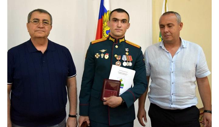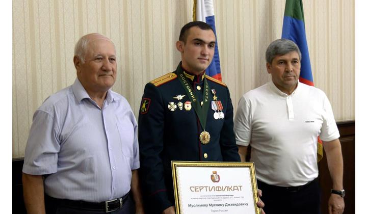 30-августдиз Россиядин Федерациядин Игит, старший лейтенант Муслим Муслимоваз Дербент шегьердин администрациядин кьиле авайбуру, шегьердин собранидин депутатри, Афгъанистандин дяведин ветеранри, жемиятдин векилри, Дербентдин школа-интернатдин кадетри чlехи тlвар тебрикна.