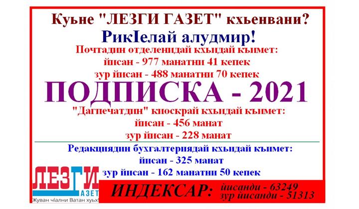 Исятда чи вилик 2021-йис патал газет кхьинин (подписка) кIвалах акъвазнава. Хквезвани куь кIвализ республикадин дережада хайи чIалал акъатзавай газет?