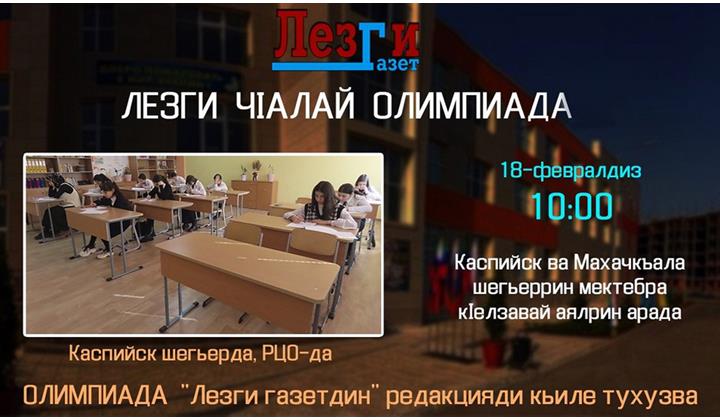 Жегьилрин арада хайи чIал машгьурунин, ам вилик тухунин макьсаддалди цIи ругуд лагьай сеферда тешкилзавай олимпиада 18-февралдин сятдин 10-даз Каспийск шегьердин РЦО-да (Республикадин образованидин центр) Махачкъала ва Каспийск шегьеррин мектебрин 6-классра кIелзавай аялрин арада кьиле фида. Алатай йисара хьиз, цIини тафаватлу хьайибуруз (1, 2, 3-чкаяр кьурбуруз) дипломар, пулунин пишкешар ва ктабар гуда.
