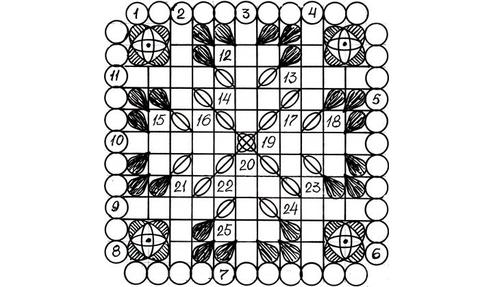 Дуьз цIарара: 12. Са ранг. 11. ЛакI-лакI хьанвай хам алай чIехи вагьши гьайван. 13. Тапус. 14. Куьлуь марф. 10. Докъузпара районда хуьр. 19. Музыкадин алат, тафт. 22. Цин хвал. 9. Кьурагь районда хуьр. 24. Тум атIай мал. 25. Халидин са кIус.
