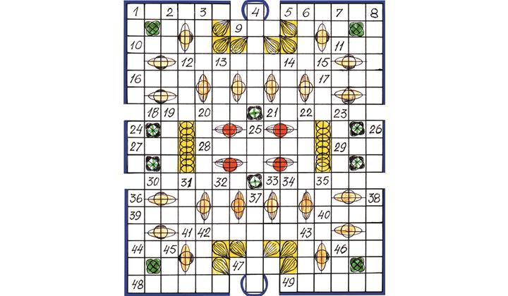 Дуьз цIарара: 1. Парчадин са жуьре. 5. “Лакви” лезгидалди. 9. КIвалин гьайван. 10. Гуьрчег, юргъа балкIан. 11. Къав алай гьаят. 12. Школьникрин отпуск (урус гаф). 16. Шикаят. 17. ВацIун кьери чка. 18. Лезги халкьдин виликан гьерекат. 21. Къул чIугурла документдал эцигда. 27. Чуьлдин емиш. 28. Хъвер, шадвал патал ийидай ихтилат. 29. Кьил эвядай затI. 30. Эрменистандин дагъ. 33. Самарканд вилаятда са шегьер. 39. КIвач акIидай, вир хьтин чка. 40. “Сентябрь” лезгидалди. 41. Экуь хьун. 44. Адал гъал алчукда. 46. Са кьил кIеви куьче. 47. ЭкъечIай къуьлуьн гъуьруькай ийидай шей. 48. Спортда чIехи агалкьунрин дережа (урус гаф). 49. Машинра цазвай кудай шей (урус гаф).