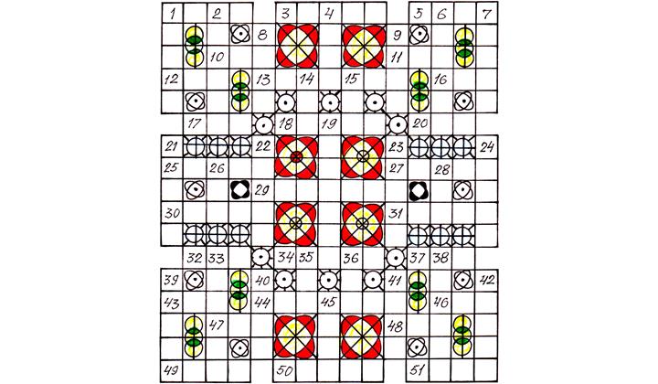 Дуьз цIарара: 1. Мектебда, тарс башламишдайла, яда. 3,13 ва 50. СтIал Сулейманан районда сад-садан къвалав гвай пуд хуьр. 5. Тундрада жедай гьайван. 10. Гуьрз къилинж. 11. КIерецдин са жуьре. 12. Чуьлдин емиш. 16. КIвалерик кутада. 17. ВацIалай гъвечIи я. 18. Кьадардилай гзаф. 20. Парталриз ядай алат. 25. Дербент районда са хуьр. 27. Лезги са райондин центр. 29. Вач-хъша, кIанкIал. 30. Лакъаб (урус гаф). 31. Субут, аргумент. 32. КIерецар гатIкIидай пая. 34. Дуьгуьдин жуьре. 37. Шегьердин кьиле авайди (урус гаф). 43. КицIин къув. 44. Къене як туна, рганвай руфунар (ратар). 46. ЧIехи. 47. Мехъерин йифен межлис. 48. Мукъаят. 49. Салан майва. 51. Азар.