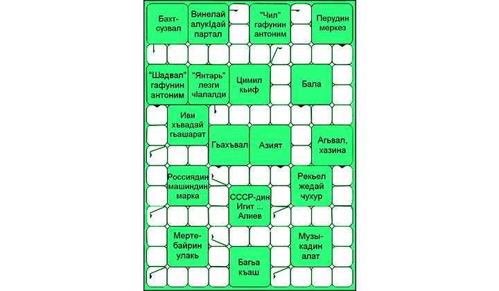 Лезги сканвордЛГ»-дин 4-нумрадиз акъатай кроссворддин жавабар: 1. Мере. 2. Нефс. 3. Леке. 4. Фаркь. 5. Тарс. 6. ЧIере. 7. Кьеркь. 8. Тике. 9. Хъире. 10. Чене. 11. ГетIе. 12. Фере. 8 0 2025-02-11 10:24:36Автор Лезги Газет