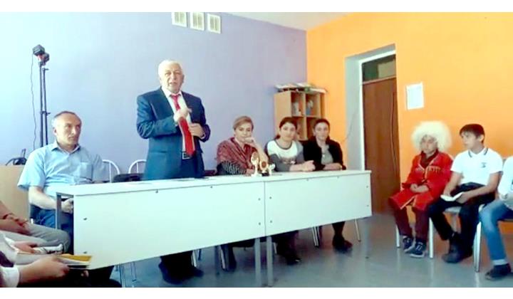 Сифте гаф рахай Шамсудин Шихкеримовича мярекатдал Суна Эюбовадиз ва Зарема Агьмедовадиз, вичин патай савкьатар яз, лезги чIалан методикадин ктабарни гана.