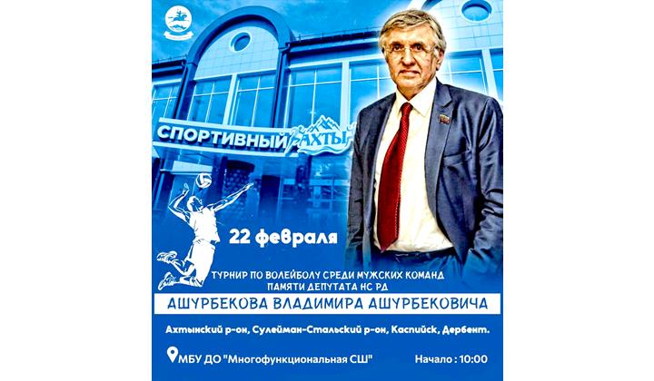 22-февралдиз пакаман сятдин 10-даз Ахцегьа, Ленинан куьчеда кардик квай «многофункциональная» юкьван школада, Дагъустандин Халкьдин Собранидин депутат Владимир Ашурбегован экуь къаматдиз бахшна, волейболдай итимрин командайрин арада турнир кьиле фида. Идакай чаз райадминистрациядин пресс-къуллугъди хабар гана. Волейболдал рикI алай виридаз турнирдиз атун теклифзава.