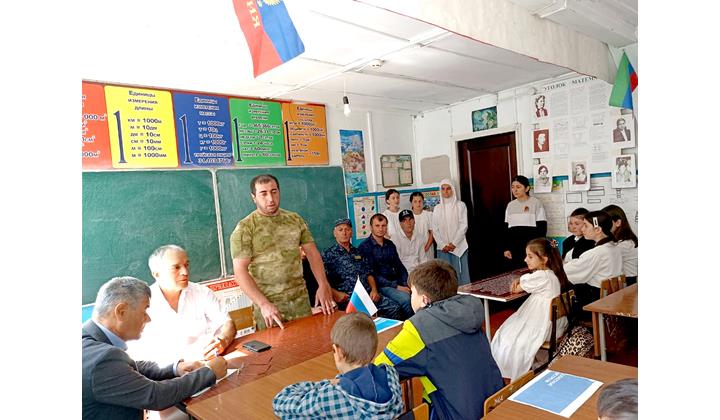 Эхирдай школадин директор Сейфуллагь Назарова викIегь аскердиз муаллимринни аялрин патай тербиядин манадин хъсан суьгьбет авунай ва Ватан хуьнай чухсагъул лагьана. Аялри адан къужах гьуьрметдивди цуькверив ацIурна.