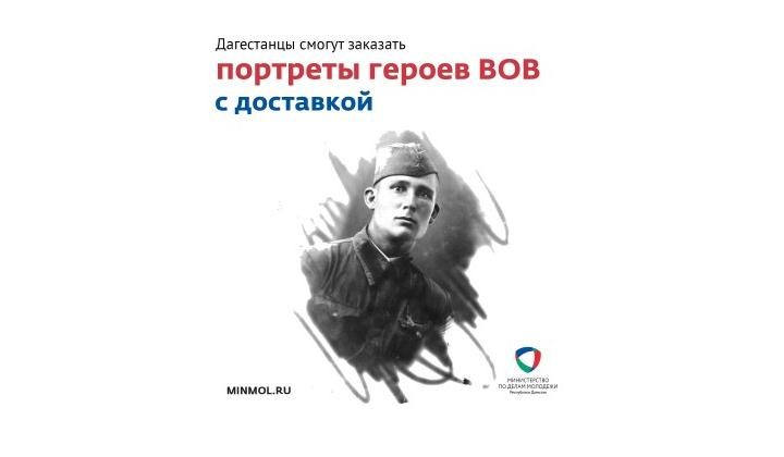 Минмолодежи Дагестана информирует, что в связи с ограничениями, введенными из-за коронавируса, у жителей республики есть возможность в онлайн-режиме заказать изготовление портрета героя ВОВ для Бессмертного полка с последующей доставкой. Информация об этом имеется на сайте MINMOL.RU