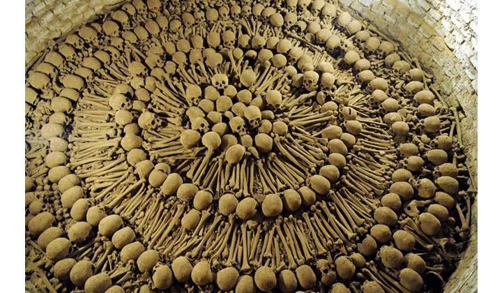 В перуанском городе Лима есть небезызвестный монастырь Святого Франциска Ассизского, под которыми находятся мрачные катакомбы с тоннами костей. Они пугают своими жуткими черными провалами, однако туристов от этого не становится меньше, скорее, наоборот. Склеп в катакомбах хранит останки свыше 70 тысяч человек. Черепа в склепе декоративно расположены в виде концентрических кругов и разделены костями.