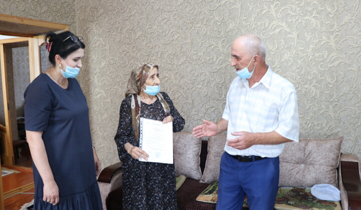 Свидетельство вдове ветерана вручили председатель Общественной палаты Ахтынского района Али Исмаилов и старший специалист отдела по делам ветеранов труда и войны районного Управления социальной защиты населения Сефият Ризванова.