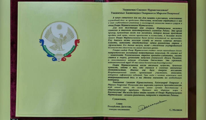 По данному поводу Глава РД Сергей Меликов у себя на странице в Instagram анонсировал показ фильма, который подготовил телеканал ГТРК «Дагестан». Фильм рассказывает о судьбе Омара Муртазалиевича Муртазалиева, служившего за рубежом.