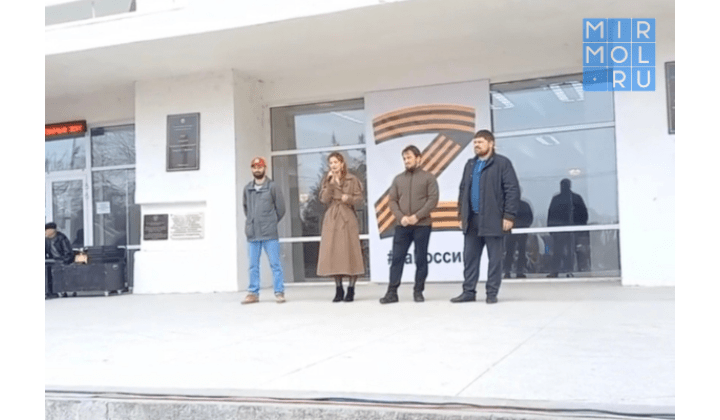 На митинге-концерте в поддержку армии России и жителей Донбасса выступила группа журналистов, которая недавно вернулась из Донбасса: руководитель ГБУ РД «Координационный информационно-культурный центр» Мухтар Амиров, корреспондент сетевого издания «Мирмол» Мурад Магомедов, автор телеграмм-канала «Что там у дагестанцев» Исрафил Исрафилов и корреспондент телеканала РГВК «Дагестан» Умай Ибрагимова.