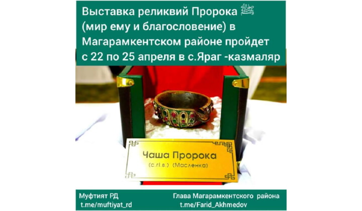 Выставка священных реликвий Посланника Аллаhа — нашего Пророка Мухаммада ( мир ему и благословение) в этот благословенный месяц Рамадан будет проходить 4 дня в с.Яраг-Казмаляр Магарамкентского района Республики Дагестан. Об этом сообщили в пресс-службе МКУ «Информационный центр» Магарамкентского района.