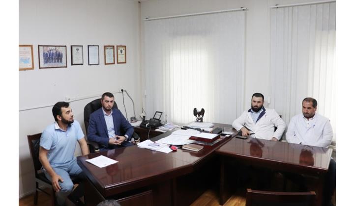 Шамилов и Вердиев выразили благодарность экс-главному врачу Шахлару Бухсаеву за его многолетней труд, и поздравили Р. Мусабекова с назначением.
