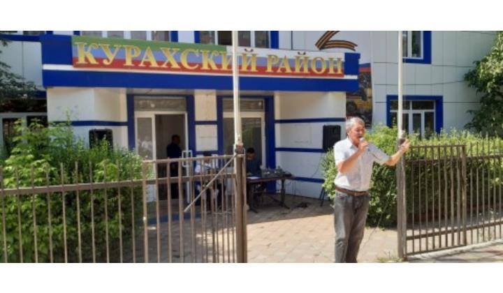 Честь поднятия Флага на флагштоке было предоставлено главе МР «Курахский район» Замиру Азизову. под звуки Гимна РФ глава района поднял трехцветный Государственный Флаг РФ.