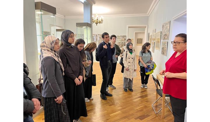 Экскурсию-лекцию по выставке для студентов во главе с преподавателем Мадиной Сахратулаевой провела заместитель генерального директора — руководитель Культурно-выставочного центра Национального музея РД Дагирова Джамиля Арслангереевна, которая познакомила их с богатым культурным наследием Дагестана.
