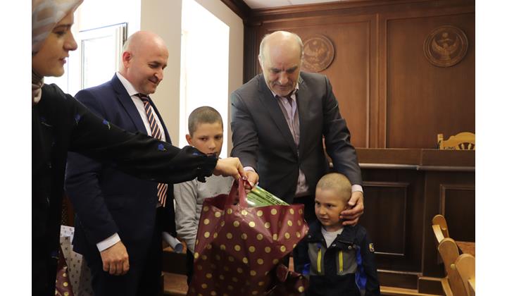 После праздничных мероприятий Вагаб Абдулхамидов вместе с главой района Магомедом Гасановым посетил семьи, мобилизованных и погибших, выполняя патриотический долг в ходе СВО и вручил детям пакеты со сладостями.