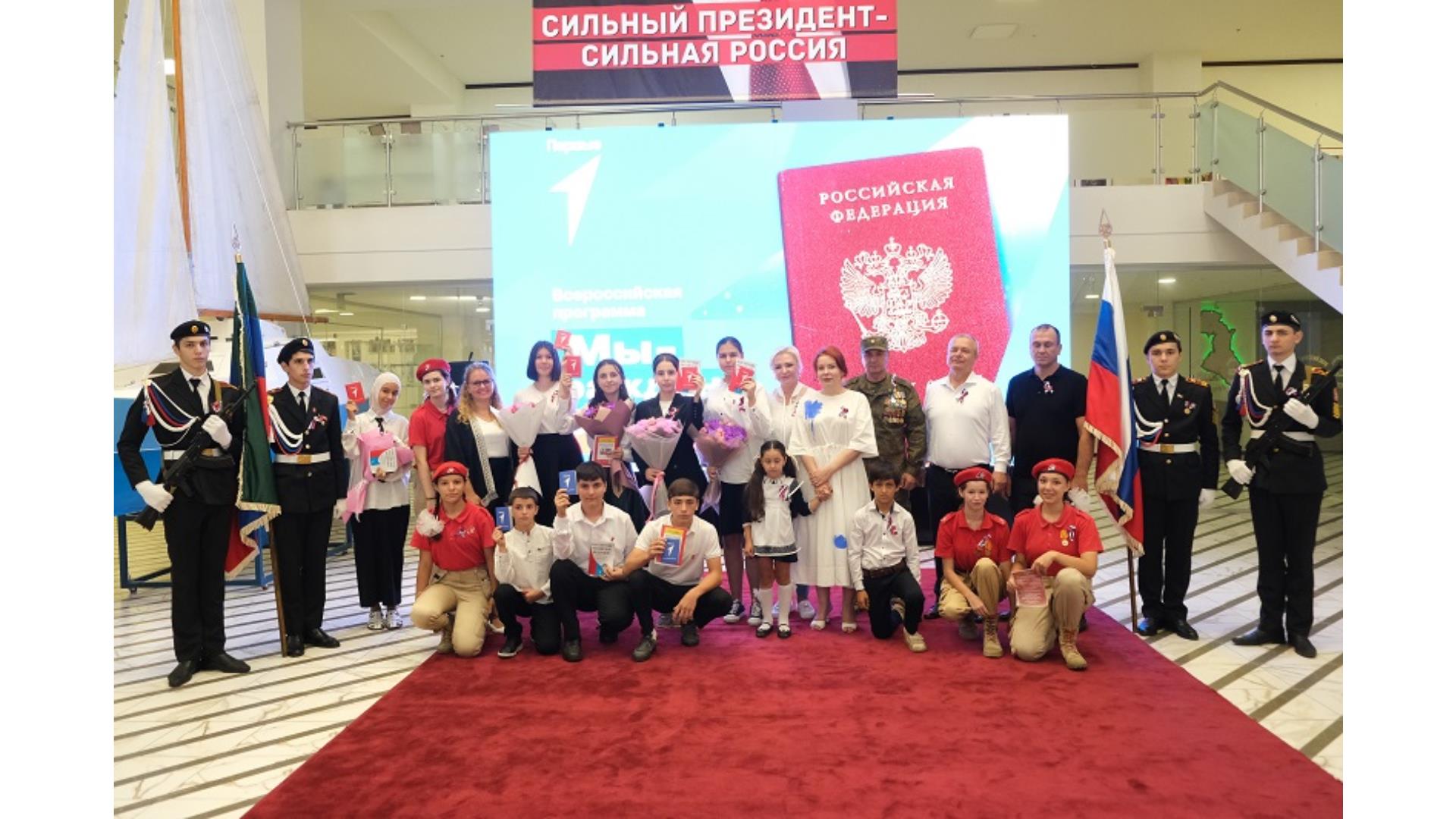 В историческом парке «Россия – моя история» первые паспорта ребятам вручили представители органов исполнительной власти, помощник Главы РД, Председатель Совета Движения Первых РД Людмила Саидова, Уполномоченный при Главе РД по защите семьи, материнства и прав ребенка Марина Ежова, руководитель филиала Государственного фонда поддержки участников СВО «Защитники Отечества» по РД Магомед Рашидов, Председатель Комитета по образованию и науке НС РД Елена Павлюченко.