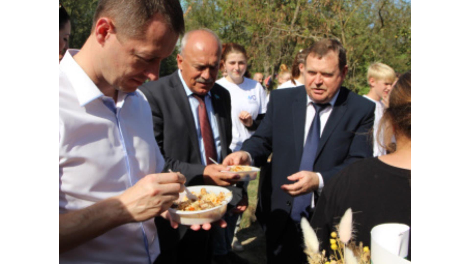 «Праздник плова» был центром внимания, и люди со всех праздничных зон съехались на праздник. Более 1500 человек собрались именно вокруг плова в День города.