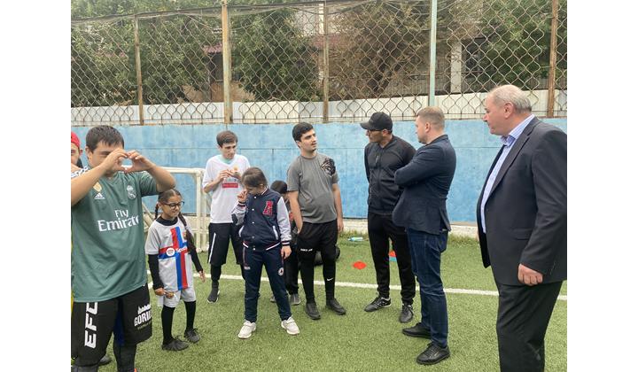 На футбольном поле им. Маркарова Артема Бичаева встретила тренерская команда во главе с главным тренером Адильханом Адильхановым, родителями и командой ребятишек. Для подопечных фонда «Благосфера» это не первая встреча с парламентарием. Ранее Бичаев оказал им благотворительную помощь.
