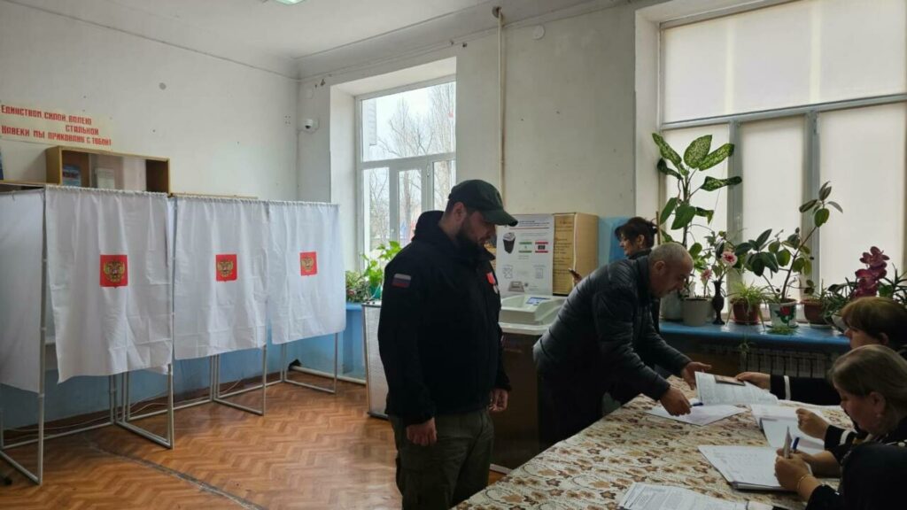 Омар Багинов, участник СВО, член Регионального политсовета «Единой России», молодогвардеец, проголосовал на выборах Президента РФ на участке, расположенном в Техническом колледже им. Р.Н. Ашуралиева.