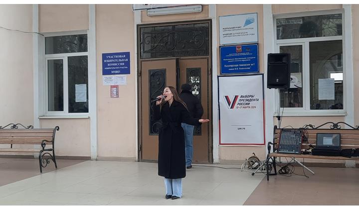 Во второй день голосования на выборах Президента РФ на избирательных участках артисты центра культуры и солисты терского ансамбля казачьей песни создали своими яркими выступлениями праздничную атмосферу.