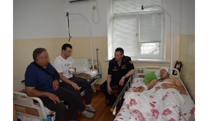 Росгвардейцы проходят лечение в медико-санитарной части МВД России по Республике Дагестан. Руководитель теруправления побеседовал с бойцами, спросил, как они себя чувствуют. Генерал-майор Александр Орехов поблагодарил бойцов за мужество и пожелал скорейшего выздоровления.