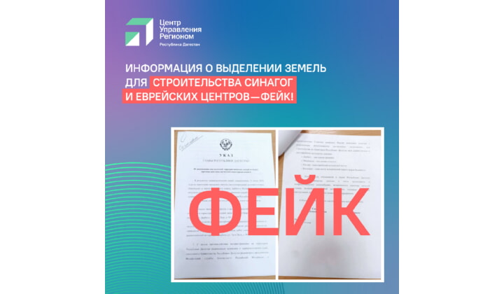 В соцсетях и мессенджерах распространяется якобы указ главы Дагестана о выделении земельных участков для строительства в регионе пяти синагог и двух еврейских культурных центров. Специалисты Центра управления регионом обратились за разъяснениями в Администрацию Главы и Правительства Дагестана, где информацию назвали фейковой. Сообщает Telegram канал ЦУР РД.