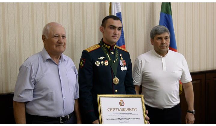 А главным подарком, сделанный Герою России меценатами, стала 3-х комнатная квартира возле мультимедийного фонтана в центре Дербента.
