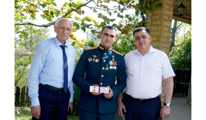 Нагрудной знак и удостоверние вручил военнослужащему глава Магарамкентского Фарид Ахмедов вместе с заместителем Председателя Правительства РД Рамазаном Джафаровым.