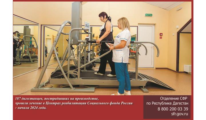 В 2024 году 187 дагестанцев, которые получили травмы на производстве или профессиональные заболевания, прошли лечение в реабилитационных центрах Социального фонда. Жители региона побывали в специализированных многопрофильных реабилитационных центрах: «Вятские Увалы» (Кировская область), «Голубая речка» (Московская область), «Тинаки» (Астраханская область) и «Волгоград» (г. Волгоград). В них созданы все необходимые условия для физического, социального и психологического восстановления посетителей.