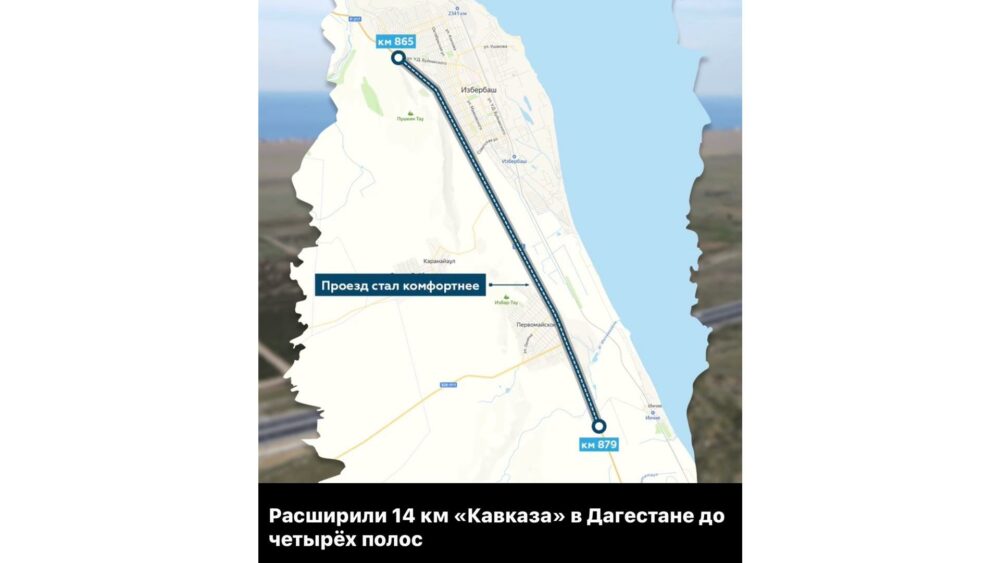 Проезд по участку трассы «Кавказ» у города Избербаша стал гораздо удобнее после того, как её расширили до четырёх полос!