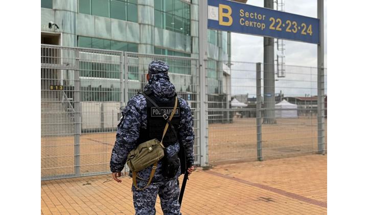 Перед началом матча инженерные подразделения Росгвардии и МВД обследовали трибуны стадиона и прилегающую территорию на предмет обнаружения взрывоопасных предметов. Кроме того, росгвардейцы патрулировали прилегающую к спортивной арене территорию и вместе с коллегами из других силовых структур обеспечили пропускной режим.