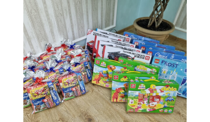 Детям участников СВО лично вручили подарки и сладкие наборы, а также организовали для них праздничный обед.