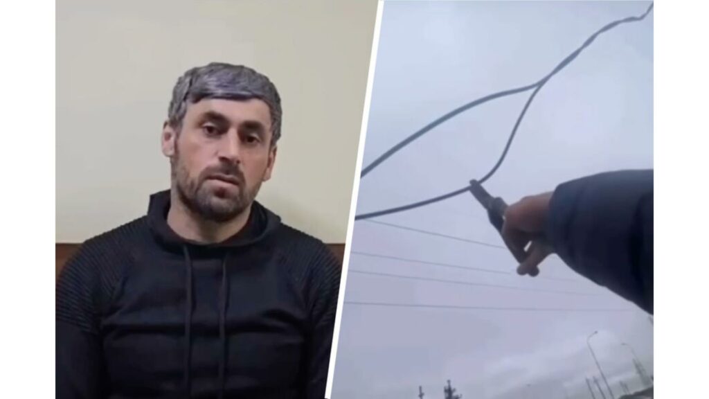 Видео, как злоумышленник обрезает провода, а потом оправдывается перед сотрудниками полиции было опубликовано региональными телерам-каналами.