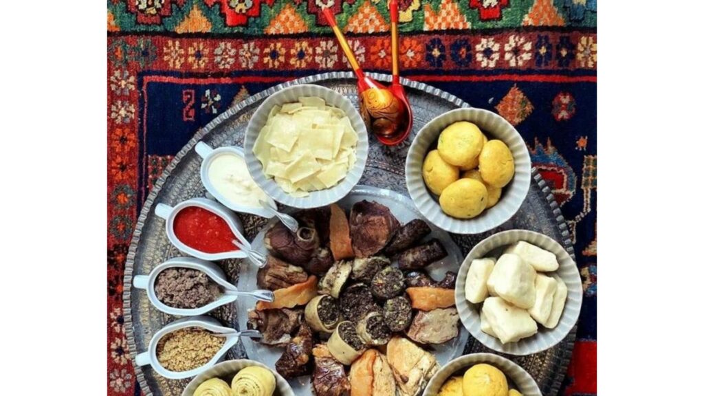 Здесь речь идёт о хинкале, курзе (сочные изделия с мясной, овощной или сырной начинкой, обрамленной в косичку), кураговой каше (фруктовый десерт), горском супе из злаков, бобовых и сушеного мяса, а также всех видах чуду.
