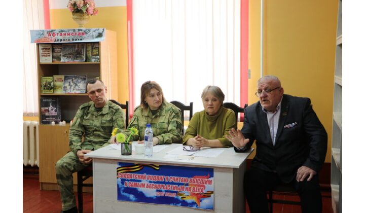 Ведущие мероприятия, главный библиотекарь ЦБ Лилия Слепокурова и начальник клуба войсковой части ведомства Анжела Абилиева, рассказали присутствующим о ключевых событиях Афганской войны, уделив особое внимание мужеству уроженцев г. Кизляра, проявивших героизм на поле боя.