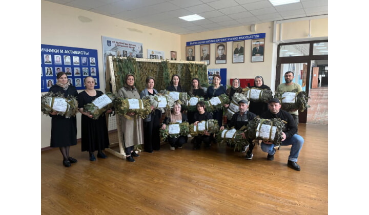 По инициативе председателя регионального общественного совета партпроекта «Женское движение Единой России», инициатора проекта «Zапомним СВОих», заместителя декана физического факультета ДГУ Сиясат Алиевой с конца прошлого года на базе ДГУ запущена акция по созданию площадок для плетения маскировочных сетей участникам СВО.
