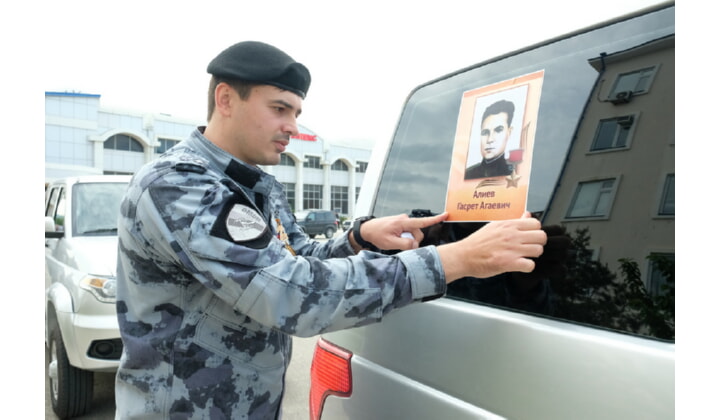 Росгвардейцы наклеили на служебные автомобили портреты своих дедов и прадедов – участников Великой Отечественной войны и боевых товарищей, погибших при исполнении служебного долга.