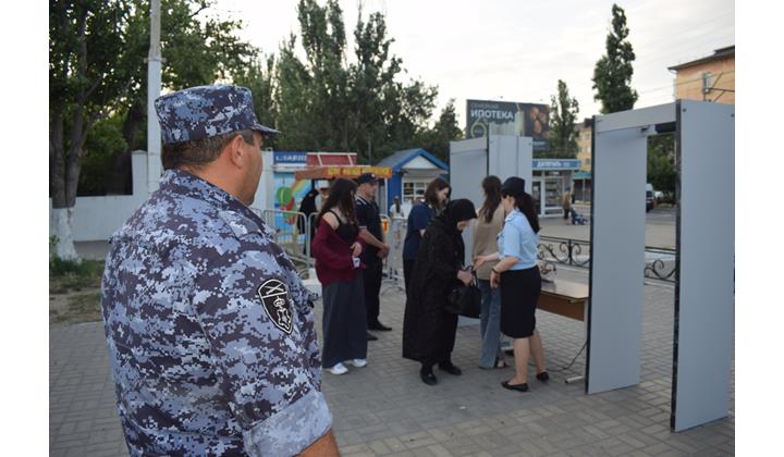 Сотрудники и военнослужащие подразделений Управления Росгвардии по Республике Дагестан совместно с коллегами из других правоохранительных структур обеспечили безопасность во время проведения на центральной площади г. Каспийска праздничного концерта, посвященного Дню Военно-морского флота Российской Федерации.