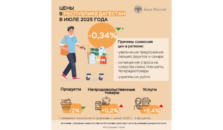 Годовая инфляция в Республике Дагестан замедлилась до 8,1% и впервые с сентября 2023 года сложилась ниже общероссийской (8,8%). Банк России будет поддерживать такие ставки в экономике, которые необходимы, чтобы вернуть годовую инфляцию к 4% в 2026 году и удерживать вблизи этого уровня в дальнейшем.