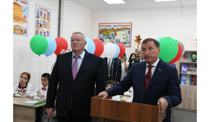 «Сегодня мы вместе с главой города Каспийска, министром экономики и территориального развития республики и депутатами Народного Собрания торжественно открыли в городе Каспийске новый корпус на 300 ученических мест в школе № 2 имени Героя Советского Союза Александра Александровича Назарова, провели торжественную линейку, посвященную Дню знаний.