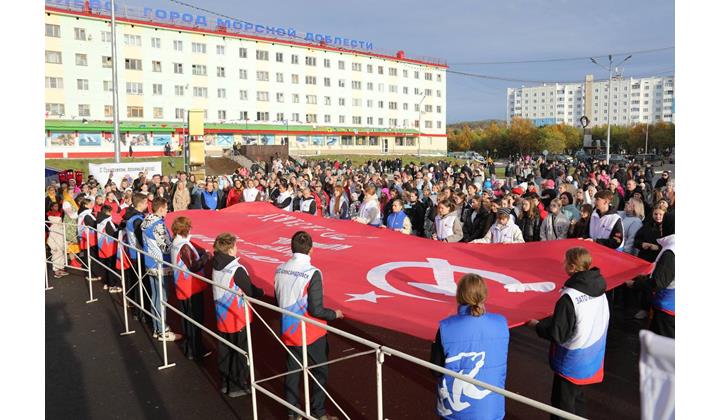 Председатель Правительства Дагестана Абдулмуслим Абдулмуслимов в рамках торжественных мероприятий, посвященных празднованию 68-летия со Дня основания города морской доблести Гаджиево в Мурманской области, принял участие в патриотической акции «Знамя Победы».