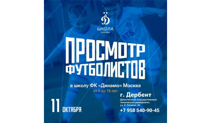 Отбор юных футболистов состоится 11 октября на базе ДГТУ исторического города. Приглашаются спортсмены от 5 до 16 лет. Они могут показать свои навыки и получить шанс тренироваться в одной из лучших футбольных школ страны.