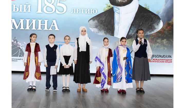 После завершения диктанта на сцену вышли учащиеся школ Каспийска и Махачкалы. Они прочитали стихи Етима Эмина на лезгинском языке. От организаторов мероприятия дети получили ценные подарки.