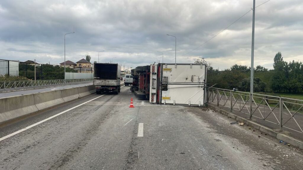 В Дагестане, на 917-м км федеральной автодороги «Кавказ», движение автотранспорта по одной стороне дороги временно ограничили. Причина – опрокидывание на территории Дербентского района фуры Scania, груженной товаром, проинформировали в пресс-службе Госавтоинспекции Дагестана.