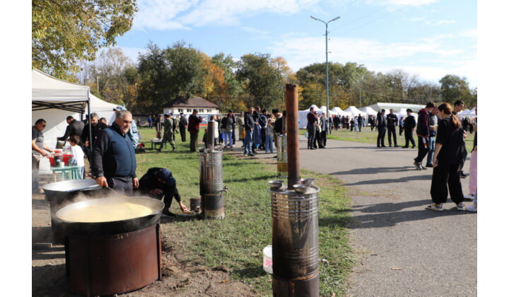 Большой гастрономический праздник организовал народный герой РФ Газимагомед Газимагомедов под открытым небом на кизлярском стадионе. Для многочисленных гостей первого международного