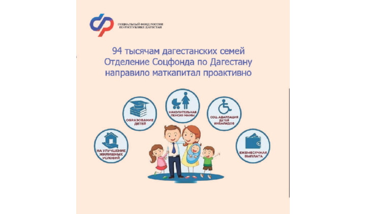 С 15 апреля 2020 года, материнский капитал в нашей стране впервые стал назначаться проактивно — автоматически сразу после рождения ребенка, без необходимости обращений от родителей и подачи документов. С того периода Отделение Социального фонда по Дагестану предоставляет капитал на основании данных о рождении детей и уже выдал таким способом сертификаты 94 тысячам дагестанских семей.